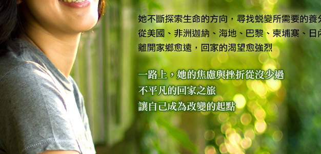 | 看了安婷的故事,你就會了解為什麼她會選擇回台灣,走一條艱辛卻充滿意義的人生道路。因為在一個不斷挑戰自我極限、追求利他的人生中,個人的生命才有機會得到最大的實現。當青年朋友在看安婷的故事時,請不要迷失在她在一次次難關之後令人驚嘆的成果。請把焦點放在當她每次做不曾做過的嘗試時,她內心之中所感受到的種種焦慮,以及如何跌跌撞撞走出這些焦慮的歷程。慢慢的,你會發現,其實安婷能做到的,你也能做到!你所需要的,僅僅是願意踏出去的勇氣,以及一顆真誠為人的心。 |