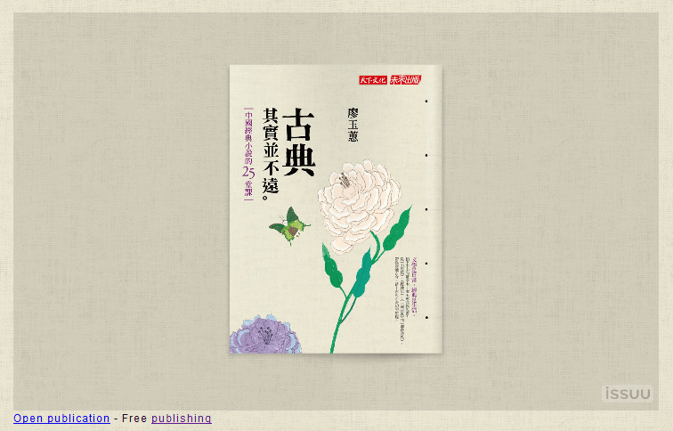 中國傳統的小說園地,從神話、寓言、志怪、傳奇、平話一路直達章回小說:形式由短篇而巨製;內容由簡單到複雜;表現手法由粗糙到精緻,堪稱各具特色、風姿綽約,相當迷人!