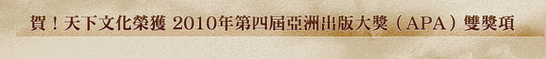 亞洲出版大獎(APA,Asian Publishing Awards)由亞洲出版協會(SOPA,the Society of Publishers in Asia)主辦,是第一個專為亞洲最優秀出版者設立的獎,目的是鼓勵亞洲出版業的傑出表現,包含亞洲雜誌經營獎、亞洲圖書出版獎及亞洲企業溝通獎等三大類獎項。第四屆亞洲出版大獎,共有來自世界各地 10 個國家、32 家公司,合計70件參賽