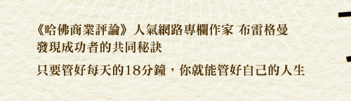 這些掙扎與沮喪,可在本書找到解答。這裡提供全面的方法,讓我們可以管理每一年、每一天和每個時刻,並專注在我們認為重要的事情上,努力實踐,讓人生往前。這是重整人生重要的第一步。