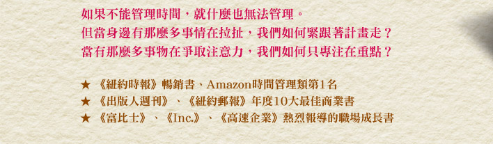 寫作這本書,是為了讓莫莉、比爾、拉吉特、瑪莉——以及你,可以在每一個時刻、每一天、每一年回首,甚至當時間到了必須回顧一生時,能夠自信地說出:「我善用了我的時間。」