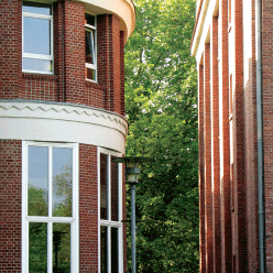 當然,也可以開車殺出魯爾區繁忙的高速公路網,在赫內爾-波寧希(Herne-Bornig)下高速公路A42交流道,然後轉彎鑽進藏在房子堆裡的社區--減速。開過限速30公里的社區馬路,滑進大到不像話的停車場,踏出車門,理好衣服。從關起車門開始,就算是穿著筆挺西裝或踩著高跟鞋來參加會議,只要當眼睛在沒有窒礙的視野中放開,迎接到來的是寬暢的心情。而夢仙旎,就站在廣場的正中央。