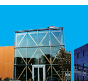 從東南邊的大門,走進這棟由56根巨大松木梁柱撐起的玻璃光罩,左邊站著的圓錐形塔,領銜帶出兩排往前延伸的方正長廊。這棟像是即將噴射升空的「太空建築」,是赫爾內市鎖釘兒城區的市民圖書館。貼近金屬色澤的外牆上,沿著出入口鑲嵌了一圈玻璃鏡,反映出天光下來自四面八方玻璃光罩的「室內」景致,就像是走向「另一個世界」的神秘按鈕。