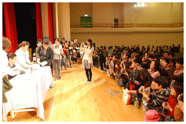 志工同學們穿著亮眼的橘色背心,親切引導讀者排隊路線。