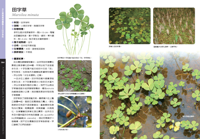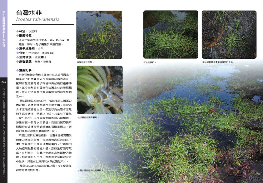 發現龐大的水車前族群是1996年的夏天在台北三芝的水田環境。也於宜蘭頭城沿海沼澤裡,見到了宜蘭水蓑衣的風采。秋季先行記錄了桃園龍潭沼池的龍潭莕菜身影,又在台中清水沿海水潭邊找到大安水蓑衣的族群。接著繼續旅行前往嘉義白水湖,找尋海生植物,如卵葉鹽藻、貝克鹽藻與流蘇菜的芳蹤。冬季則在恆春半島,如願見到泰來藻、線葉二藥藻與單脈二藥藻等珊瑚礁植物的群落。也在佳樂水的沿海濕坡地上,目擊到為數可觀的鹵蕨族群。
