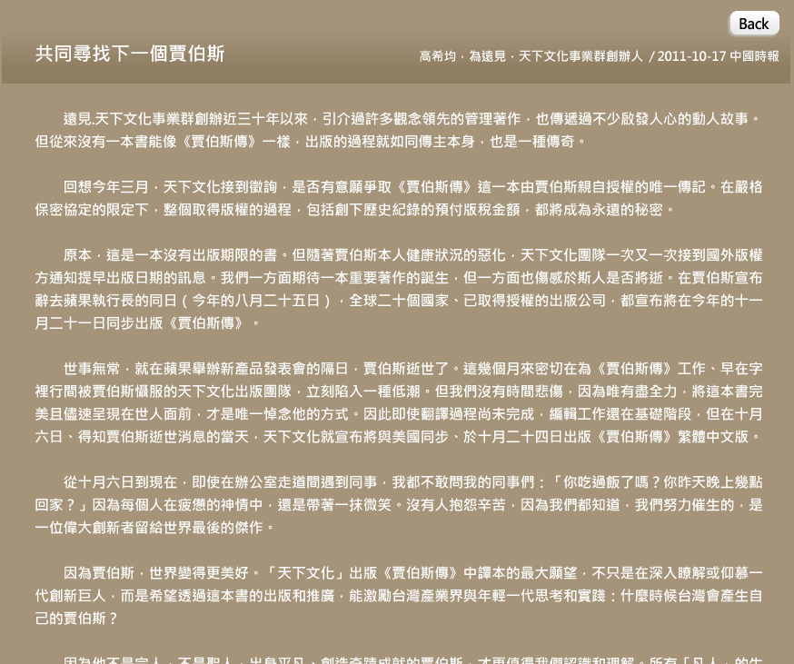 Copyright © 1999~2011 天下遠見出版股份有限公司. All rights reserved. 讀者服務部電話:(02)26620012 時間:週一∼週五 9:00∼17:00 服務信箱: