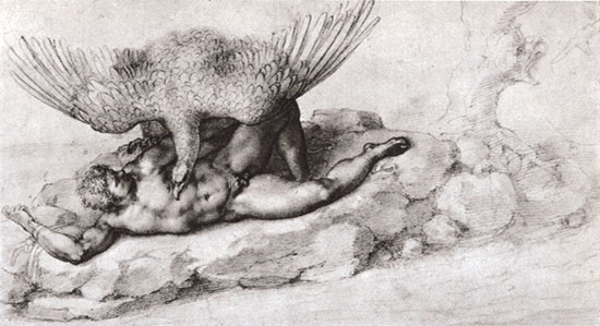 異端之愛 一隻兀鷹飛來,瞪視美麗的少年肉體,這肉體是美好的食物,這肉體將被撕裂,嚼成碎片。米開朗基羅在畫作中使自己幻化成兀鷹,也幻化成被鷹啄食的少年,他的愛情世界,究竟隱藏著什麼秘密?