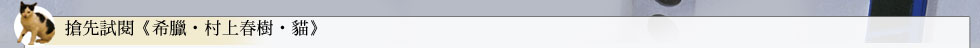 「或許也像村上春樹那樣,被遠方的鼓聲所吸引。不約而同地來到諸神的故鄉,希臘。Peggy的文字,讓我想起那年夏天的愛琴海, 她的鏡頭,捕抓到更精彩、更意外的瞬間。 從一個島,到另一個島,真的看到了許多貓。 貓的眼神,透露著言語說不出的秘密,貓是以什麼樣的心情,那樣專注地眺望大海?」──《遠方的鼓聲》譯者 賴明珠 ...... 更多推薦